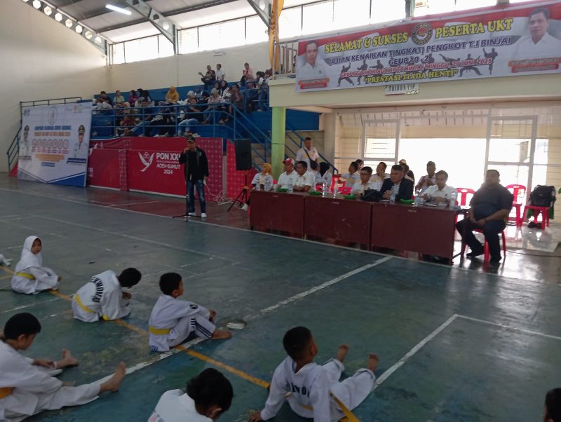 Binjai, sumatraterkini.id-Kepala BNN Kota Binjai, Ucok Ferry, M. H. dan staff Hariyanto, S.T. menghadiri Acara Pembukaan Ujian Kenaikan Tingkat Taekwondo Tahun 2025, bertempat di GOR Jalan Jambi, Kelurahan Rambung Barat, Kecamatan Binjai Selatan, Kota Binjai, Provinsi Sumatra Utara, Minggu, (29/06/2025) Pukul